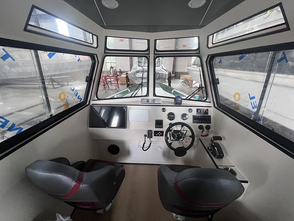Кайык люкс амортизатордук отургучтар жана жантайыңкы байкоо терезелери менен жабдылган, бул операторлордун ыңгайлуулугун камсыз кылуу менен бирге операциялык эффективдүүлүктү жогорулатуу үчүн тоскоолдуксуз панорамалык көрүнүштү камсыз кылат.